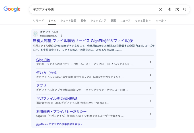 ギガファイル便(https://gigafile.nu/)にアクセスする。